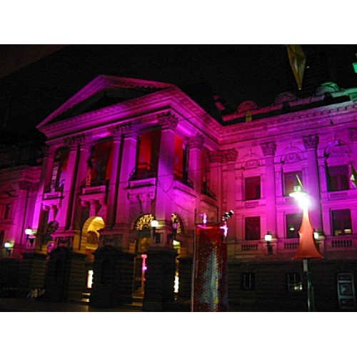 É uma Lâmpada de Descarga e Vapor Metálico de Alta pressão. Ela emite uma luz rosa e brilhante